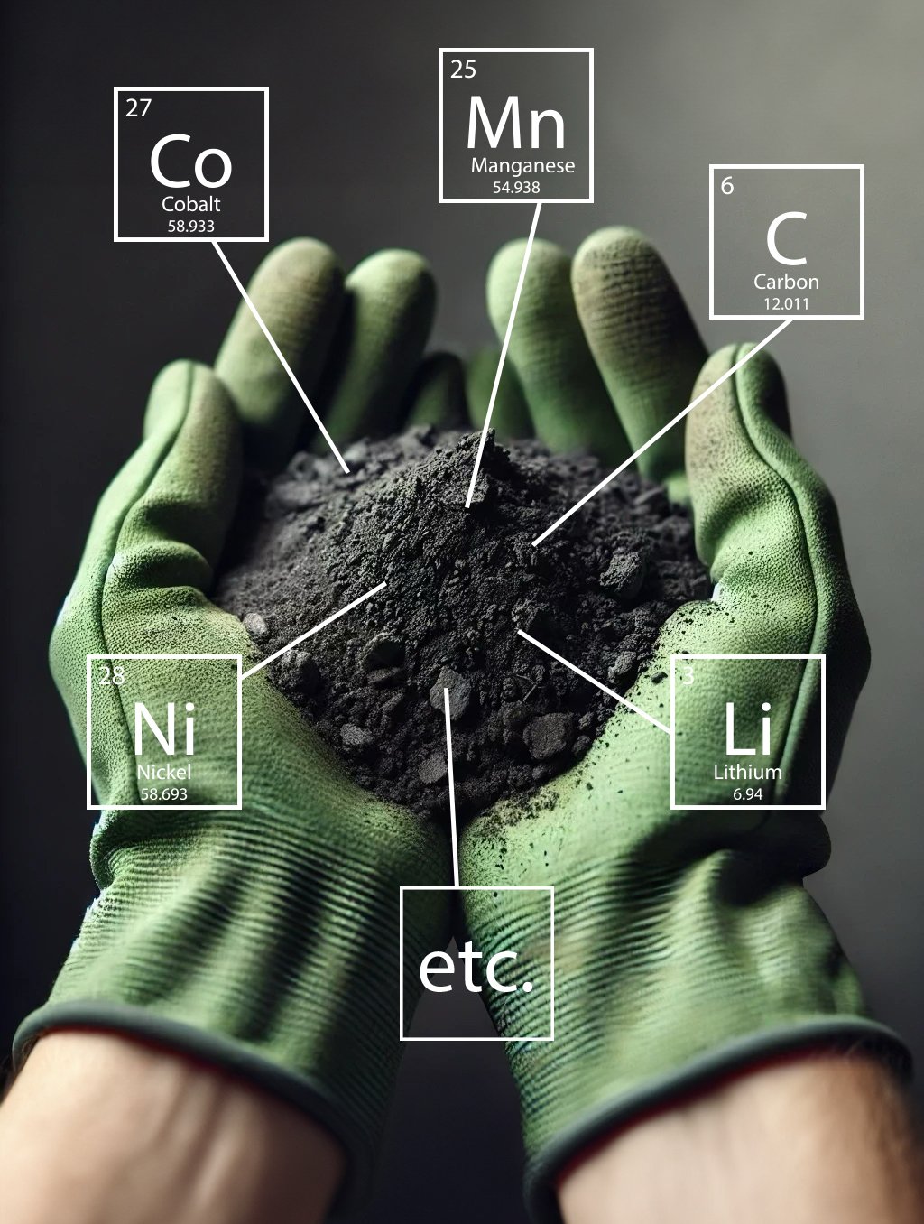 During the recycling process, a shiny, metallic mixture known as ‘black mass’ is produced. This mixture contains all the valuable metals found in battery anodes and cathodes—the most expensive parts of a battery. The black color comes from the high concentration of graphite found in the anodes of batteries.